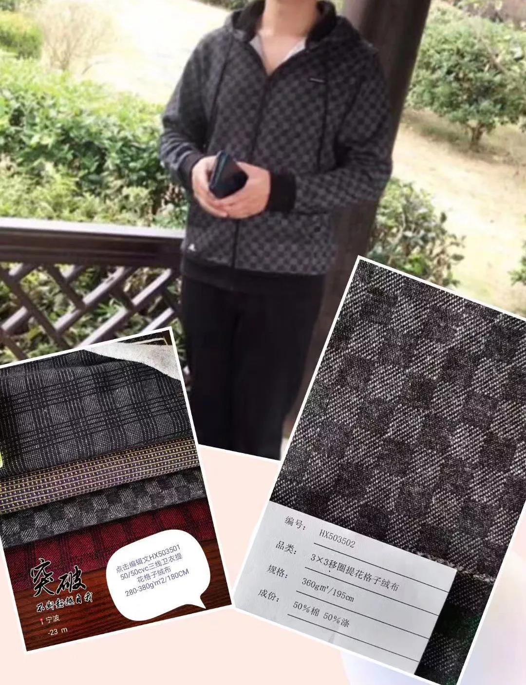 衛(wèi)衣布對于衛(wèi)衣整體質(zhì)量優(yōu)劣來講很重要,是挑選衛(wèi)衣時的一個重要參考標準。我們來看看佰源提花移圈衛(wèi)衣機織出的布樣及樣衣上身效果: